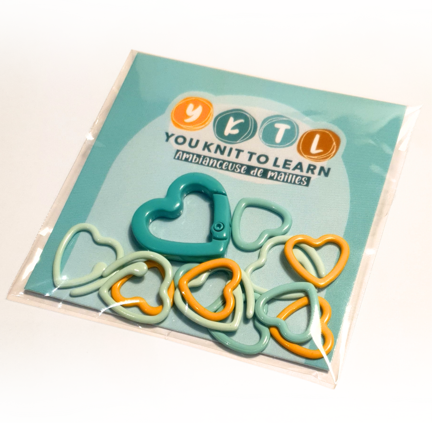 Parce qu’un bon tricot commence toujours par des repères clairs (et un peu de couleur), ce lot de marqueurs de mailles en métal, tous en forme de cœur et aux couleurs de You Knit To Learn, est pensé pour accompagner vos projets du premier rang à la dernière maille.